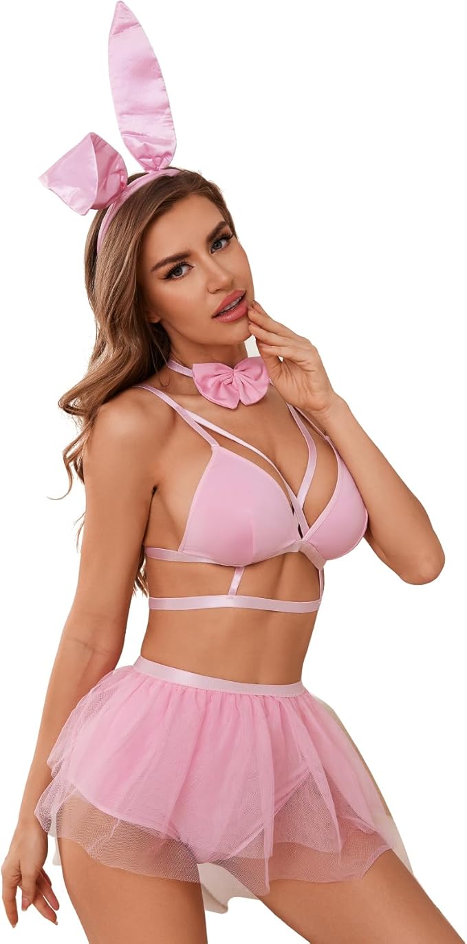 Lingerie Set for Women Sexy Bunny Girl Outfits Cosplay Costume Hollow Bra Skirt Set for Sex Naughty Boudoir Sleepwear