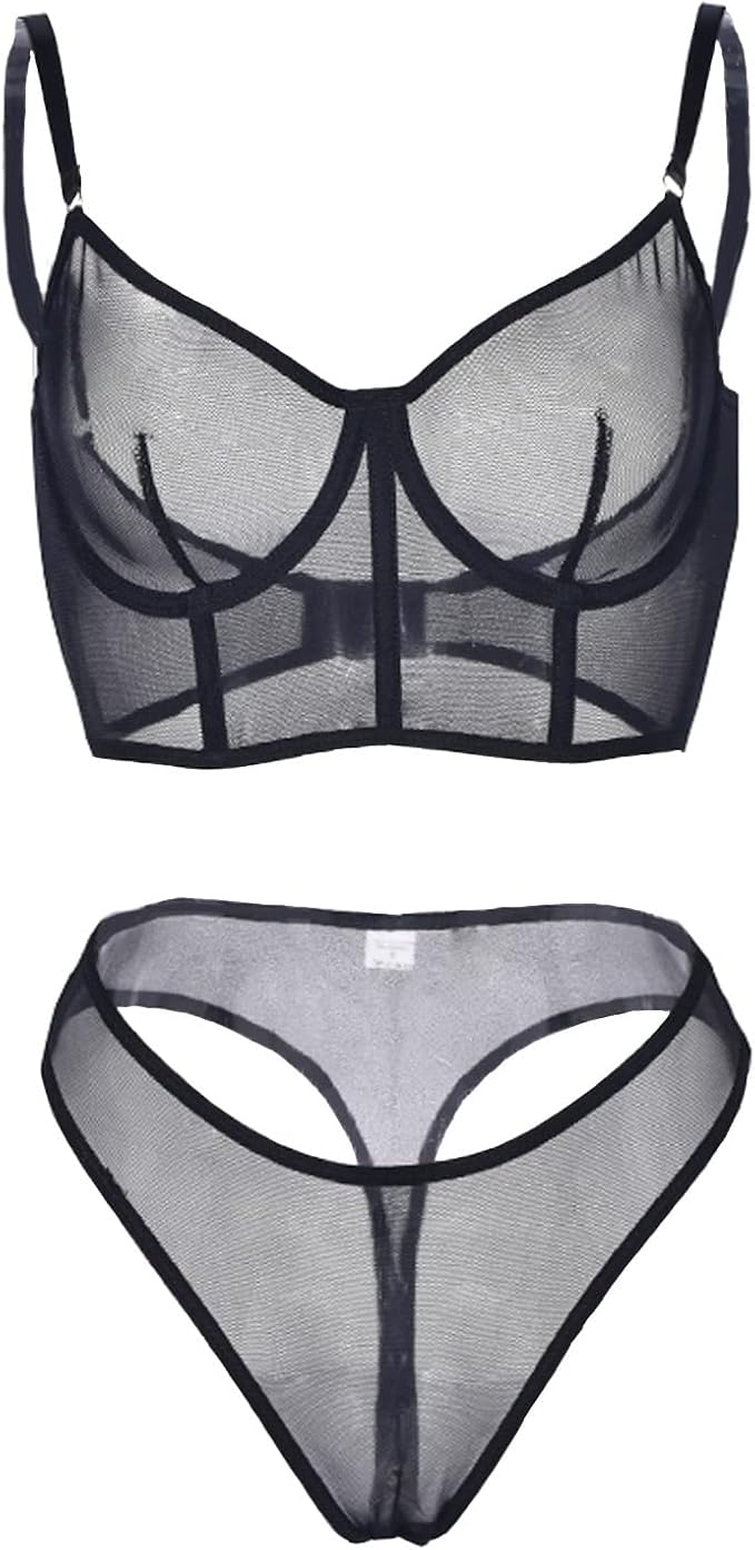 Womens Lingerie 2 Piece Lace Babydoll Sexy V Neck Bra and Panty Sets