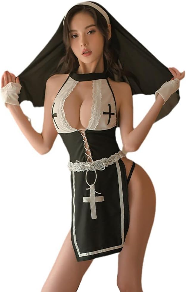 Women's cosplay nun underwear mischievous anime maid high slit sexy dress