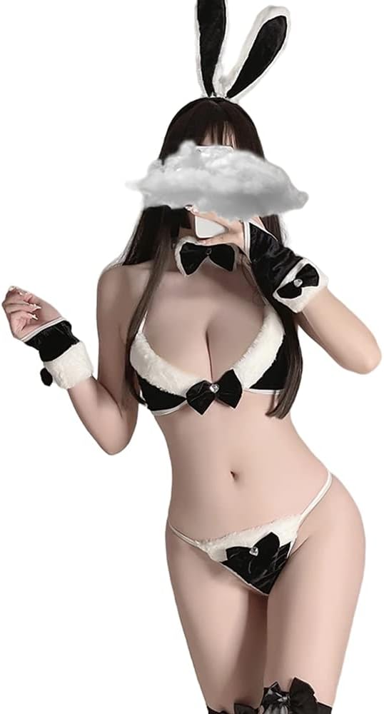 Japanese Lolita Underwear Sexy Bunny Cosplay Lingerie Costume Set Micro Bikini Furry Bra and Panty Kawaii Anime