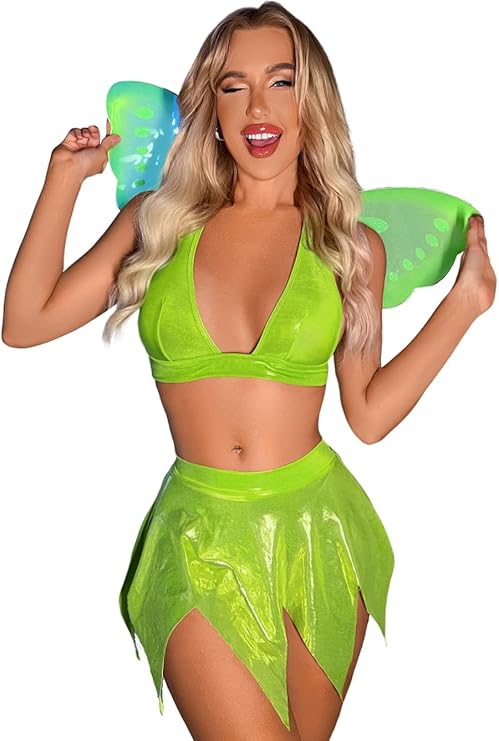 Sexy Fairy Halloween Costumes For Women, Butterfly Wings Cosplay Rave Outfits, 3 Piece Skirt Lingerie Set Boudoir
