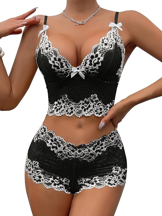 Womens Lingerie 2 Piece Lace Bra and Panty Set Sexy Lingerie Set Strappy Outfits